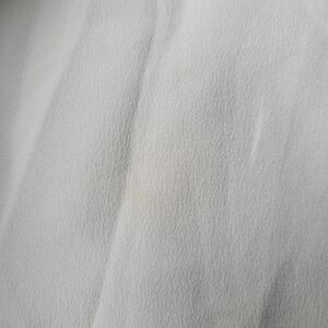 Shirt has a tag hole on back neck that didn't fully puncture through, 2 tiny holes, stain around button and few stray marks that are hard to capture.