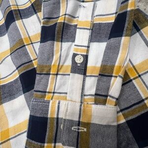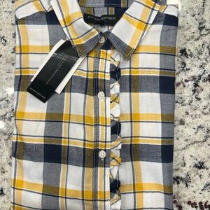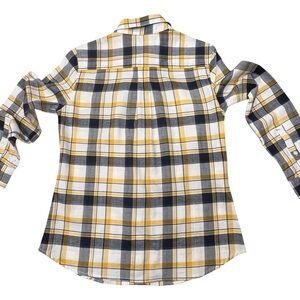 Banana Republic Yellow and Navy Checkered Shirt petite