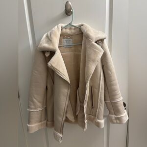Stradivarius cream faux fur moto/biker jacket