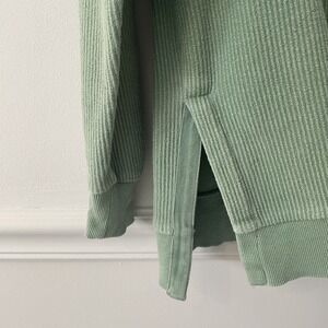 Altar'd State Smiley Face Ribbed Knit Crewneck Frosty Green Sz S Oversized Cozy