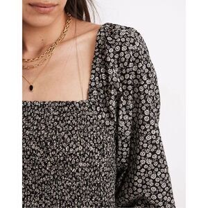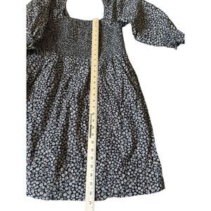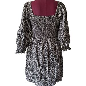 Chic mini dress with floral pattern. Features a square neckline and long sleeves. Perfect for casual outings.