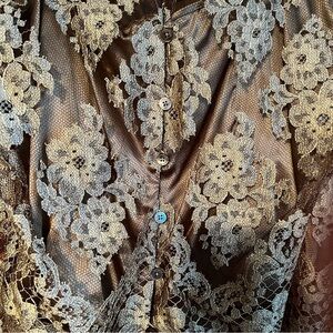 Size 10 taupe long sleeve lace top with att built in tank and back buttons