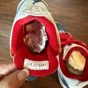 Discover the playful world of Jordan with this vibrant “messy room” basketball and lifestyle sneaker featuring a captivating blue and white color scheme. These sneakers are gently used. There are some scuffs on the exterior of the shoe on the white rubber as shown in the pictures. The tongue of the shoe is a cream collar and at the top of the tongue it’s a little bit dirty, and the white is not perfectly white. So these are used shoes and are in great condition. I did not say excellent condition because of the aforementioned flaws. That being said, my items are well cared for income from a smoke free home. Retail on these brand new is anywhere from 270 to 180 depending on where you purchase. I have priced these appropriately and I am open to considerate offers.