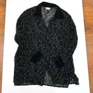 Vintage Y2K Black Sheere Burnout Velvet Blouse from Deane & White Sz M