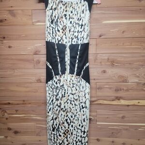 Bebe Black and White Animal Print Backless Dress