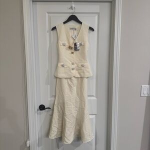 Self Portrait Cream Linen Midi Dress