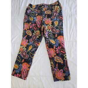 Boden Paisley Print Cropped Trousers Pants Women Sz 12R Satin High Waist Pockets