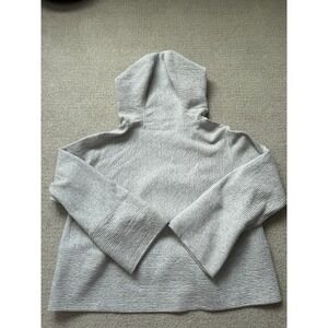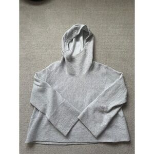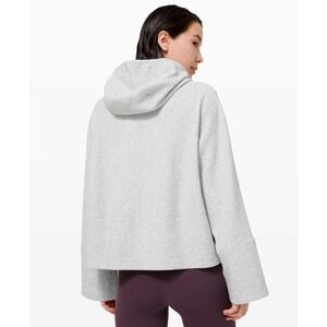 Keywords: lululemon, textured hoodie, cowl neck, boxy fit, athleisure, loungewear, yoga wear, heathered grey, oversized, cropped sleeve, quilted texture, casual style.