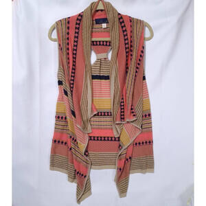 BLUE RAIN Drapey Cardigan Duster Wm S Sleeveless Stripe Knit Vest Boho Aztec