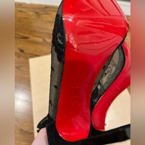 • Please note the red lacquer on soles will wear off as a result of normal use. To minimize the effect, avoid wearing in wet weather or on abrasive surfaces