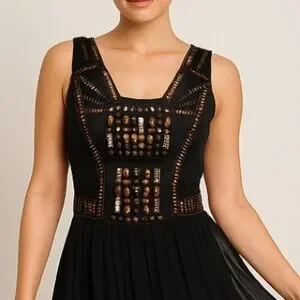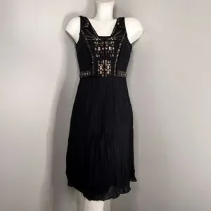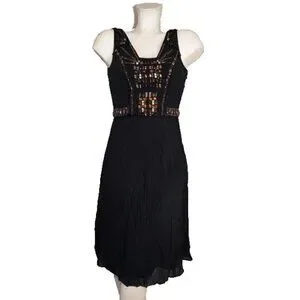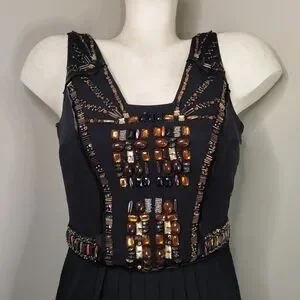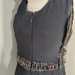 SUE WONG NOCTURNE Black Silk Topaz beaded silk pleated dress