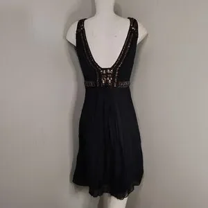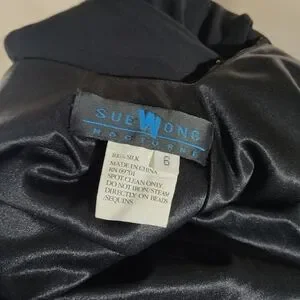 SUE WONG Nocturne Black Beaded Silk Cocktail Dress sz 6