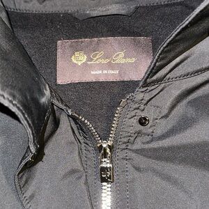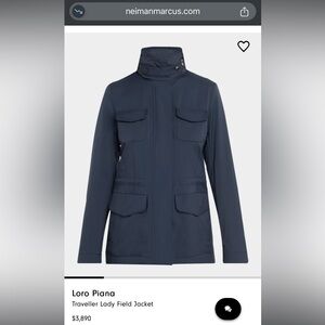 •Loro Piana "Traveller" lady field jacket in a windmate stretch storm fabrication with a zip-hidden hood.