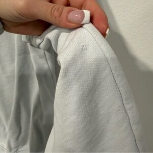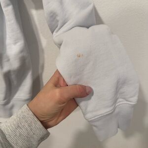 Gently worn; in good condition! *one small hole and stain on right sleeve (as shown in photos).
