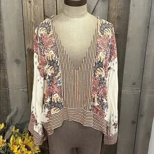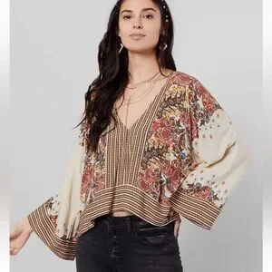 Free People Mix and Match Blouse Tea Combo Crop Boho Festival Top Long Sleeve