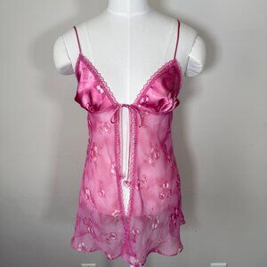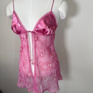 Vintage La Senza Open Tie Front Baby Doll Slip Top Pink Floral Fairy S