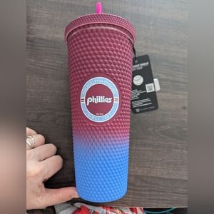 Enjoy your drinks in style with the Gradient Tumbler. Featuring a striking red and blue design, this tumbler is perfect for any fan. Show off your team spirit with every sip.