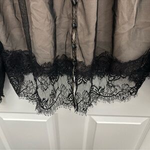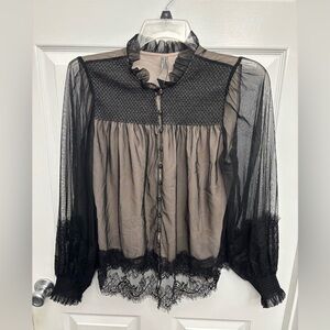 Anthropologie Sheer Black/Tan Lace Whimsigoth Dark Feminine Victorian Blouse, L
