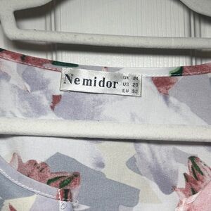 Nemidor | Women’s Boho Floral Mini Dress in Pink and White Size 20
