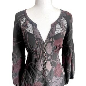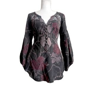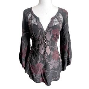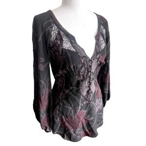 Rebecca Taylor Silk Dark Floral Lace Babydoll Top Romantic Witchy Whimsigoth 2