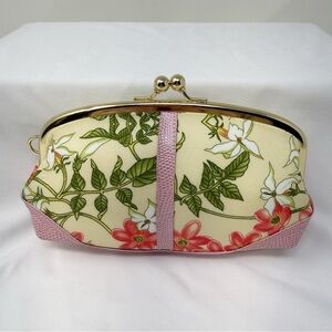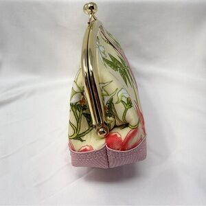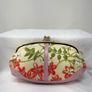 Joan Rivers Beauty Floral Kiss Lock Clutch Pink Gold Frame Evening Makeup Bag