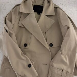 Elevate your style with this chic beige double-breasted jacket. Perfect for any occasion, this jacket offers a sophisticated look with its classic design and neutral color.