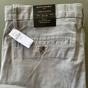 Sleek light gray chinos from Banana Republic. Ideal for versatile styling. Comfortable fit, skinny fit.