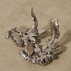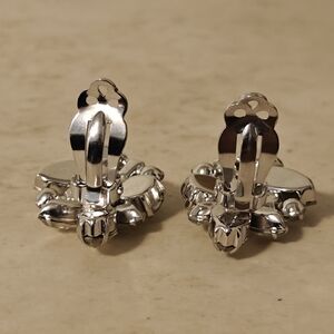 For your consideration, a pair of stunning unsigned Sherman clip on earrings, made in silver tone rhodium plated metal accented with clear crystal stones, these earrings add a touch of elegance to any outfit!
