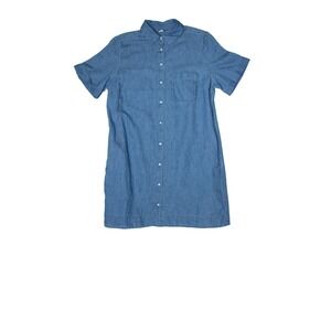 Old Navy Womens Blue Denim Shift Shirt Dress Button Up Knee Length 100% Cotton M