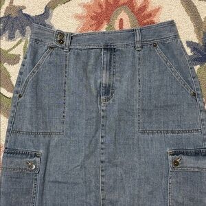 Liz Claiborne Y2K Cargo Jean Maxi Skirt, Soft, washed denim, boho, utility, 14