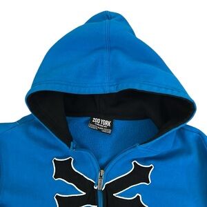 Zoo York Zip-Up Hoodie Sweatshirt Embroidered Blue/Black Long Sleeve Skate XL/20