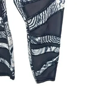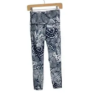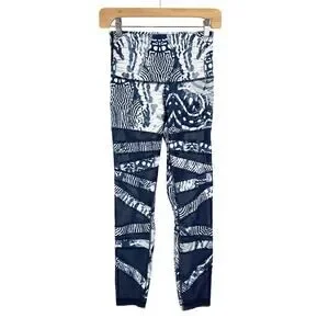 Lululemon Wanderlust Legging Women 6 Navy White High Waist Mesh Criss Cross Boho