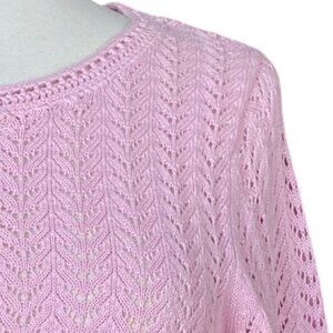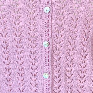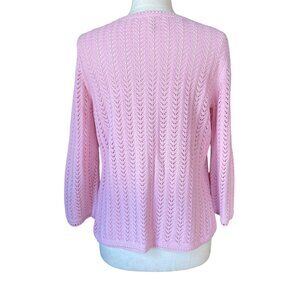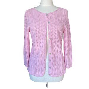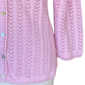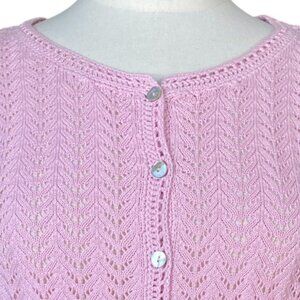 LL Bean Linen Blend Pointelle Knit Cardigan Pink Shell Buttons Cottagecore-M