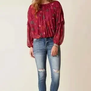 MSRP: $108 | ✨ Free People Oversized Floral Blouse – One Size / Oversized Fit | Elastic Waist | Fully Lined ✨