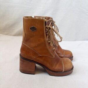 Vintage Harley Davidson Brown Leather Boots Chunky Heel Platform Wooden size 9