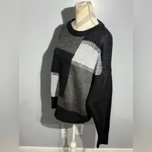 DKNY Women's Geometric Sweater - Black, Gray, and White