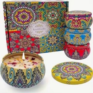 4 Scented Candles, Jasmine, Sandalwood, Lavender and Rose