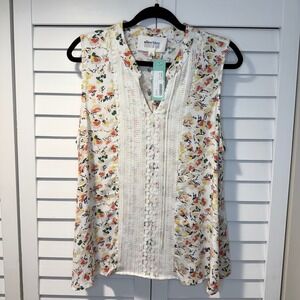 Alice Blue Moreno Lace Detail Top Floral Sleeveless Blouse White XL Career New