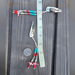 Southwestern Native American style heishi dangling tassle hair barrettes