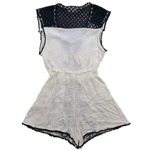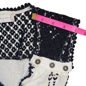 Step into effortless boho style with this Altar’d State Aztec tribal embroidered romper in women’s size Medium. Designed with a cream base and bold black geometric embroidery, this romper is a statement piece for festival season, vacations, brunch, and summer events.