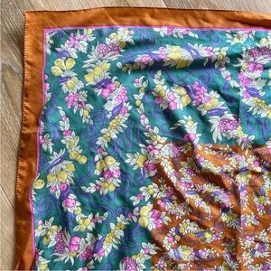 Vintage Made in Italy Floral & Fruit Motif Large Square Scarf