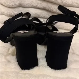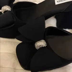 Steve Madden Black Heels with Bow and Rhinestones