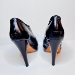 Black Leather Platform Heeled Ankle Booties