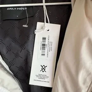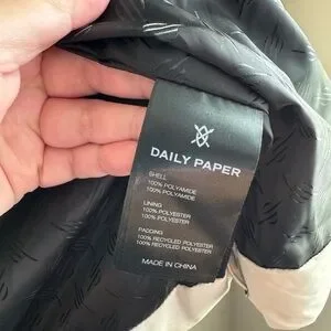 The Nicole puffer by Daily Paper is crafted from a water-resistant fabric, ready to help you battle the elements. It features a hidden zipper closure with branded puller and snap buttons on the front placket and welt pockets. The high collar is equipped with a removable hood and an elastic tube cord for easy adjustments. A rubber Daily Paper logo on the left chest completes rounds off the design.
