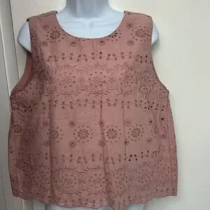 Mauve colored eyelet sleeveless shirt, fully lined, reversible?? Size XL