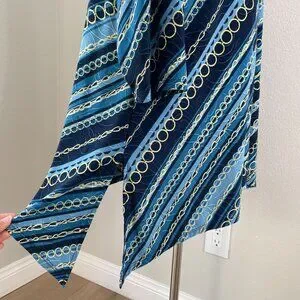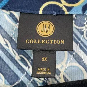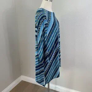 Jm Collection Womens Plus 2X Chain Print Blue Stretch Tunic Top 3/4 Sleeve Shirt