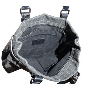 TUMI Chatham East West Satchel Bag Gray Pinstripe Wool & Leather MSRP $495 Italy