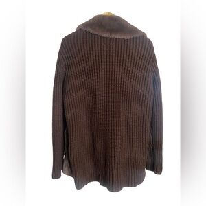 NY&C New York & Co Faux Fur Luxury Brown Sweater Cardigan Womens Large