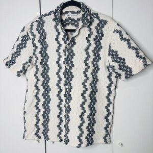 Zara Men's Casual Shirt with Black and White Zigzag Pattern