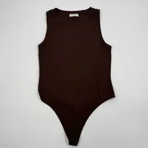 Babaton Contour Crew Neck Sleeveless Bodysuit Dark Brown L Aritzia Coffee
